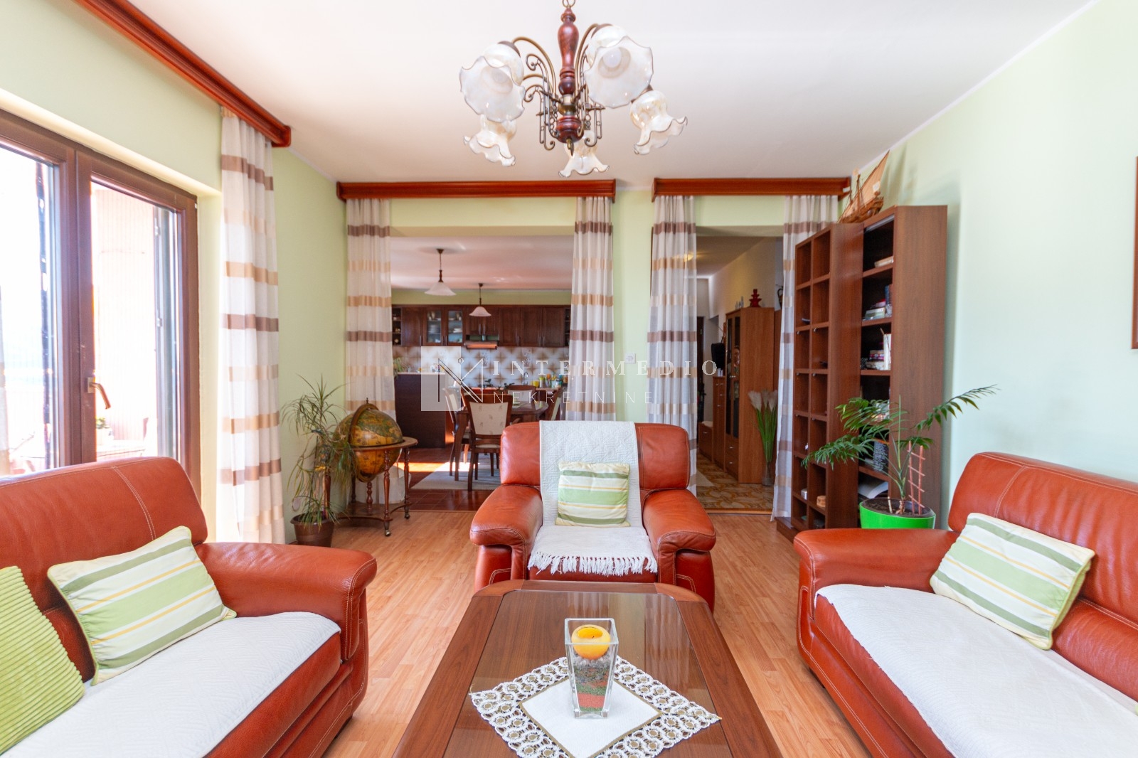 The apartment is situated on the first floor of a residential building and has a separate entrance.
