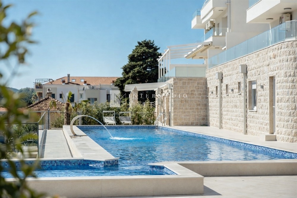 The apartment is located in a gated residential complex in Baošići, offering a high level of security, privacy and comfort.